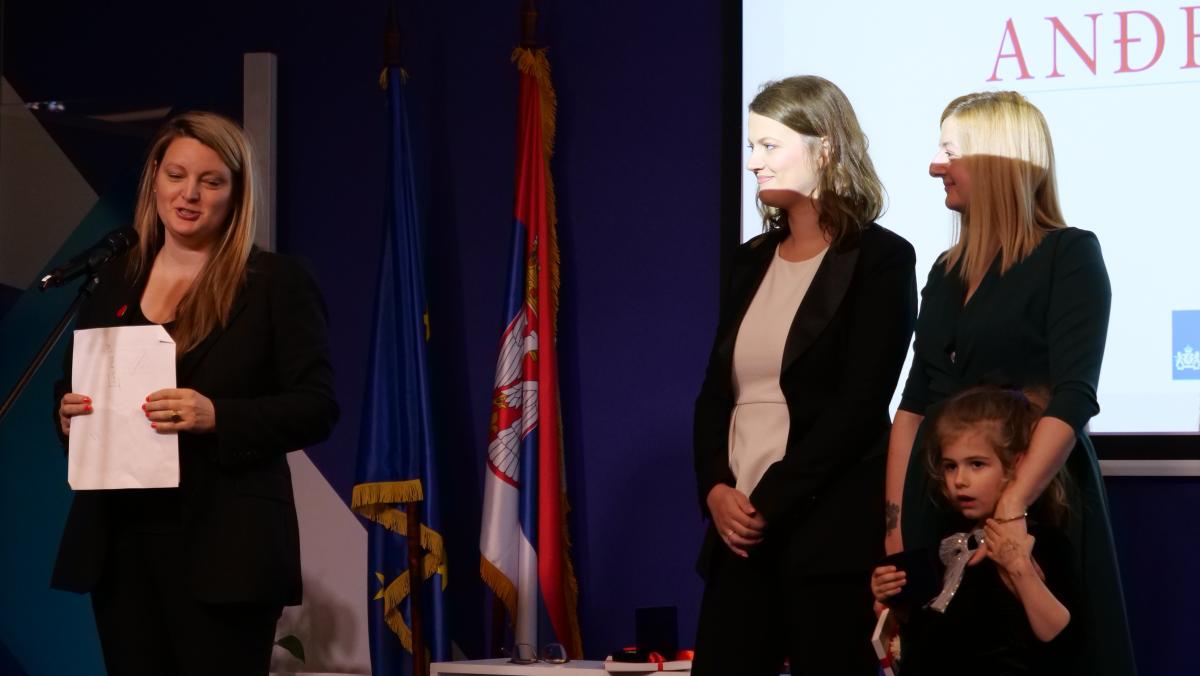 Biću slobodna da nas sve tri nazovem Atinjankama, ali i neke od dobitnica koje su večeras ovde, jer su naše najbliže saradnice i saborkinje u ovoj ideji i vrednosti oko koje nas Udruženje Atina okuplja, a to je zaštita žena koje su preživele trgovinu ljudima i sve oblike nasilja nad ženama.