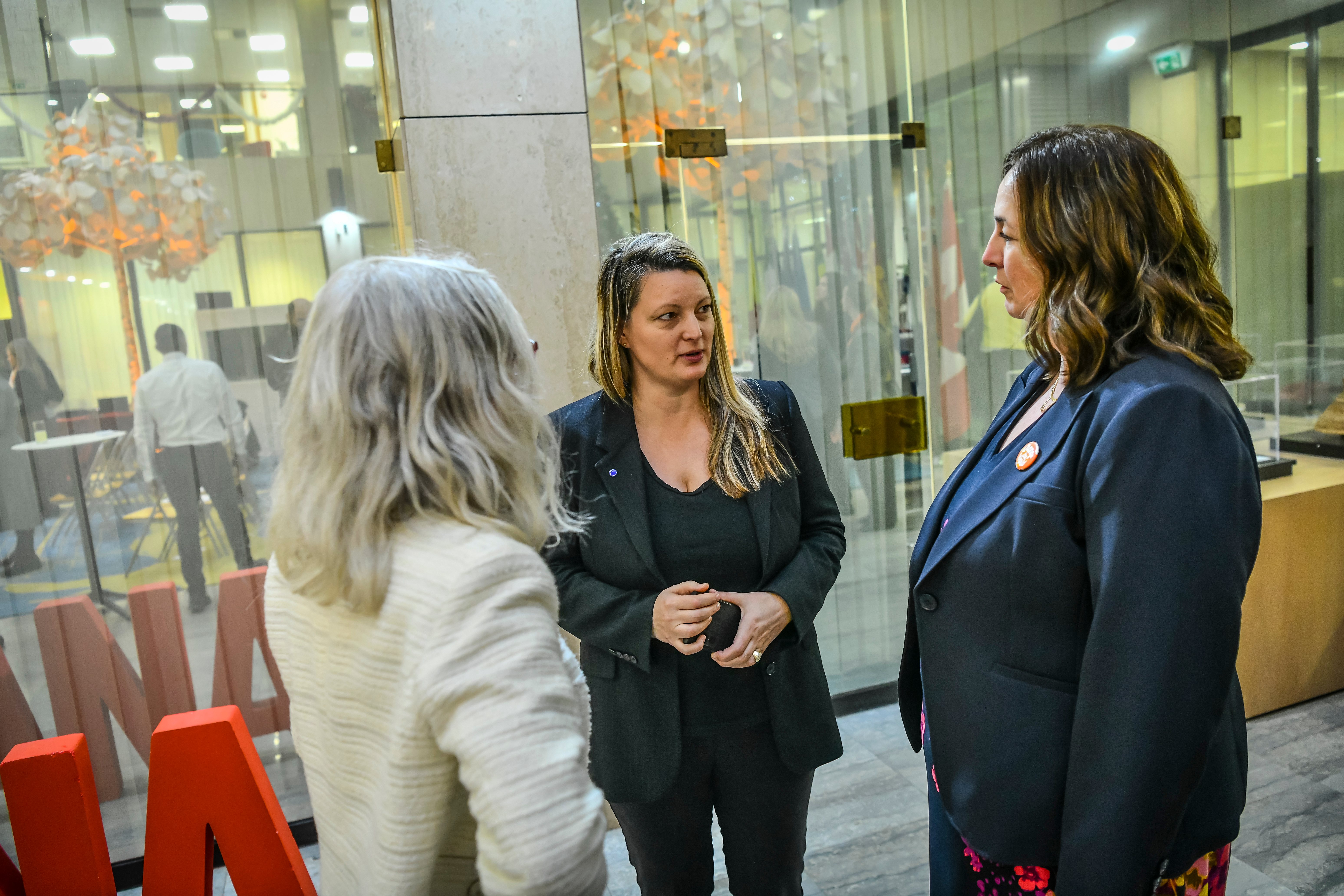Tokom istog dana, u okviru obeležavanja kampanje „16 dana aktivizma protiv rodno zasnovanog nasilja“, održan je i širi program koji je otvoren uvodnim obraćanjima predstavnica međunarodne zajednice i institucija. Skupu su se obratile Nj. E. Mišel Kameron, ambasadorka Kanade u Srbiji, Severnoj Makedoniji i Crnoj Gori, Tatjana Macura, ministarka bez portfelja zadužena za oblast rodne ravnopravnosti, sprečavanja nasilja nad ženama i ekonomskog i političkog osnaživanja žena, Nj. E. En Lugon-Mulan, ambasadorka Švajcarske u Srbiji, Plamena Halačeva, zamenica šefa Delegacije Evropske unije u Republici Srbiji, kao i Jelena Sekulić Nedeljković iz UN Women Srbija. U svojim obraćanjima istakle su važnost prepoznavanja digitalnog rodno zasnovanog nasilja kao ozbiljnog društvenog problema i potrebu za snažnijom institucionalnom i međusektorskom saradnjom u njegovom suzbijanju