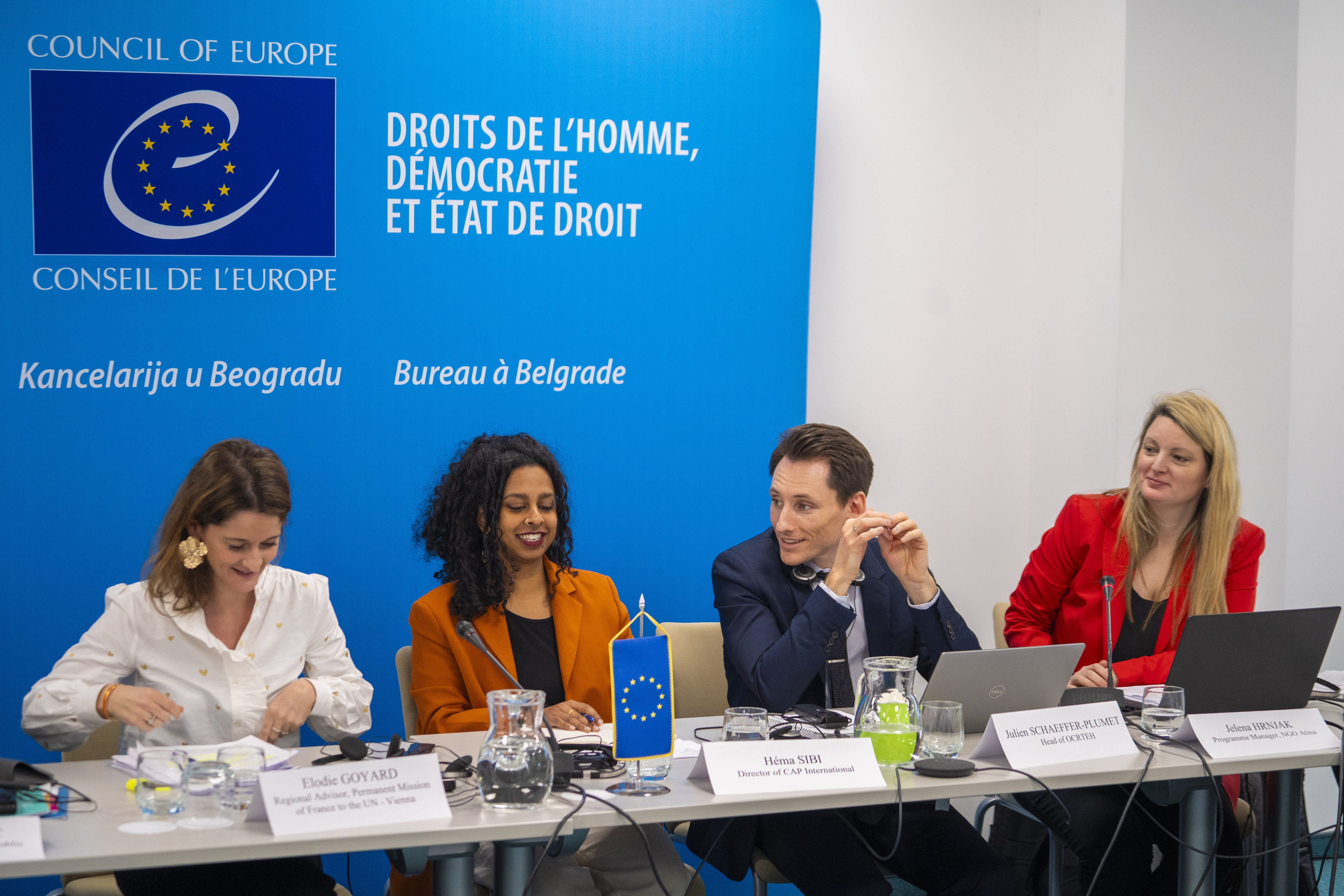 U uvodnom delu skupa govorili su gospodin Janos Babić, šef Kancelarije Saveta Evrope u Beogradu, Njegova ekselencija gospodin Pjer Košar, ambasador Republike Francuske u Srbiji, gospođa Tamara Mirović, javna tužiteljka Vrhovnog javnog tužilaštva, kao i Marijana Savić, direktorka Udruženja “Atina”. U svojim obraćanjima istakli su značaj poštovanja međunarodnih standarda, odgovornosti institucija i uloge organizacija civilnog društva u zaštiti ljudskih prava i borbi protiv trgovine ljudima.