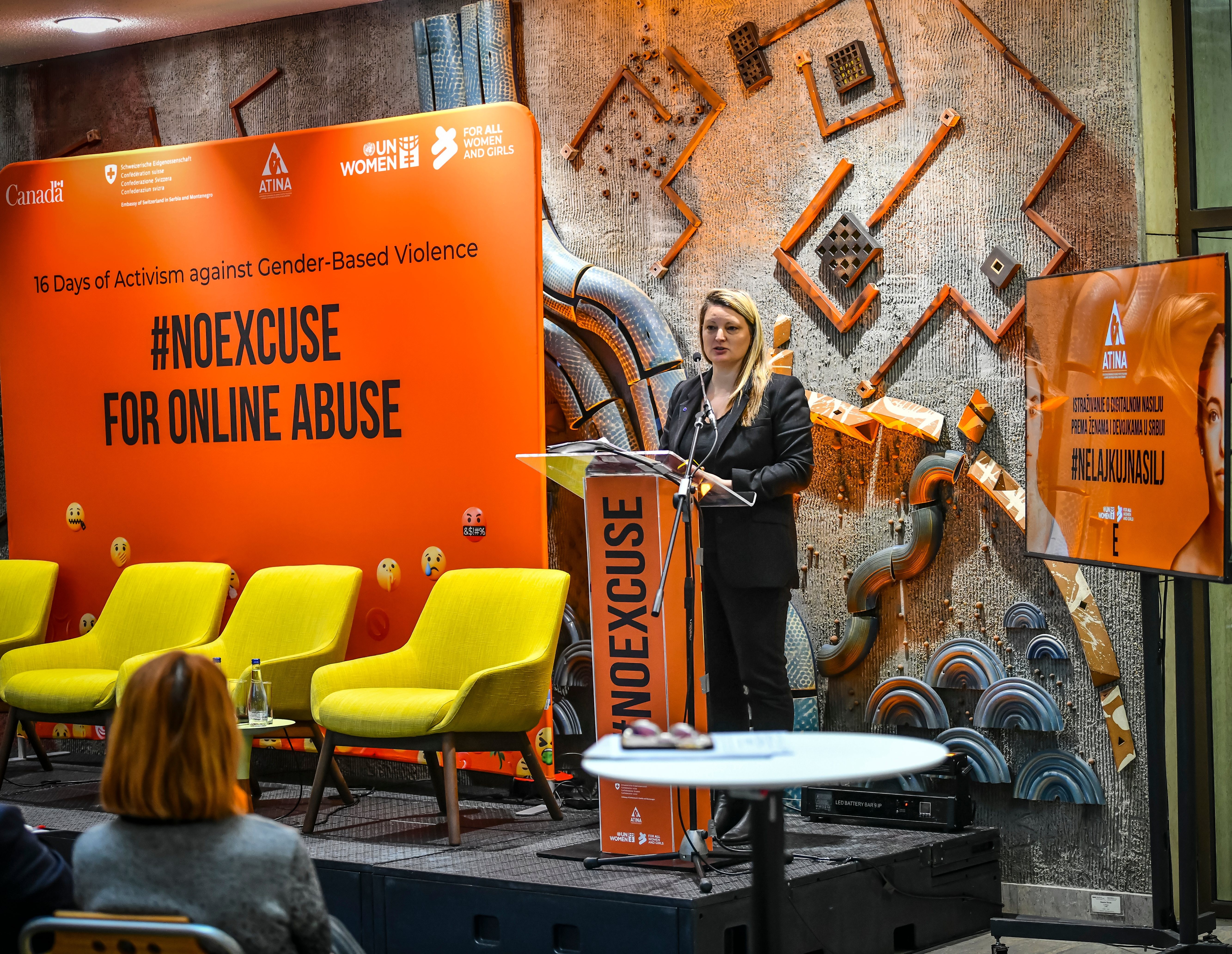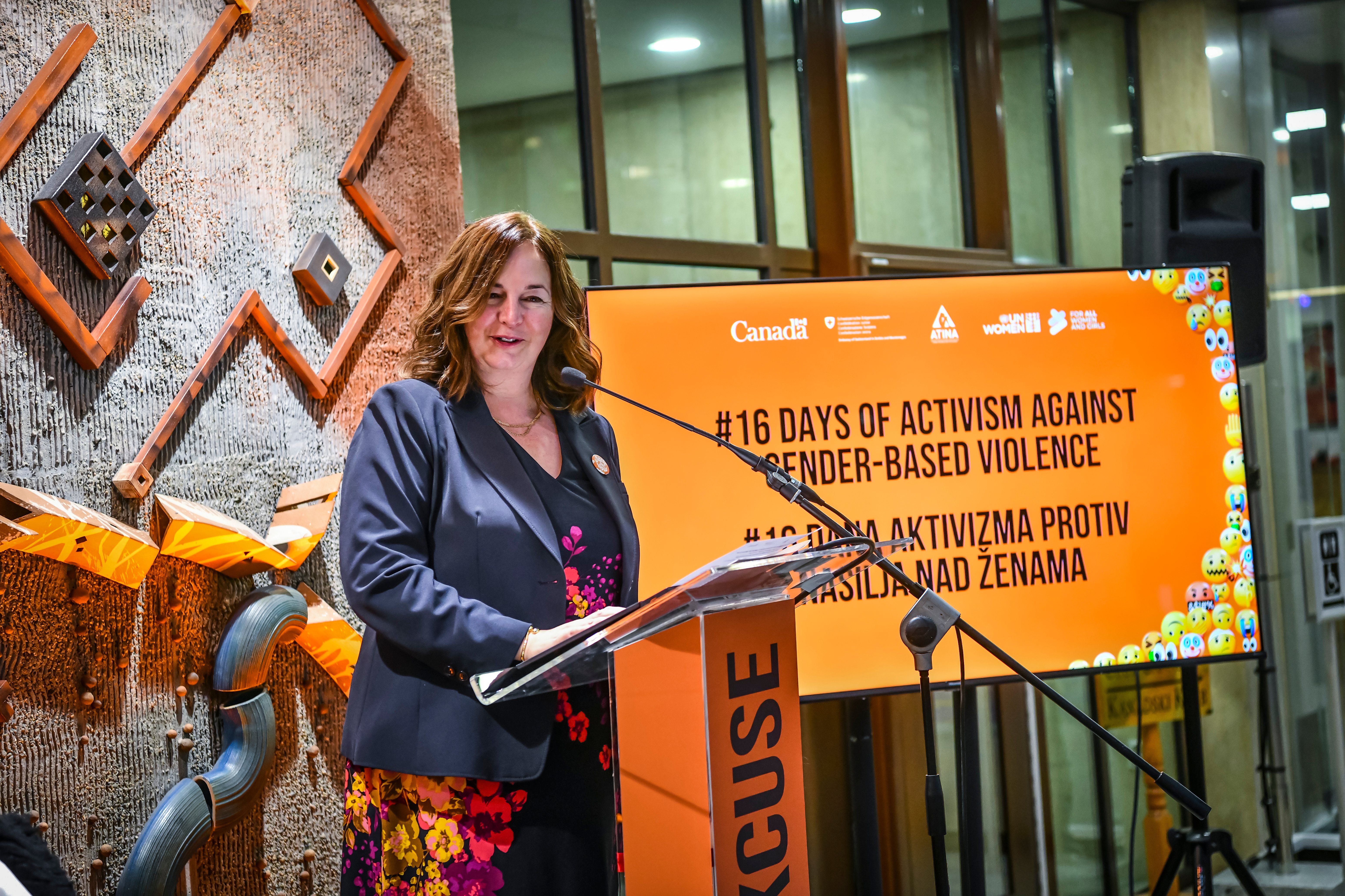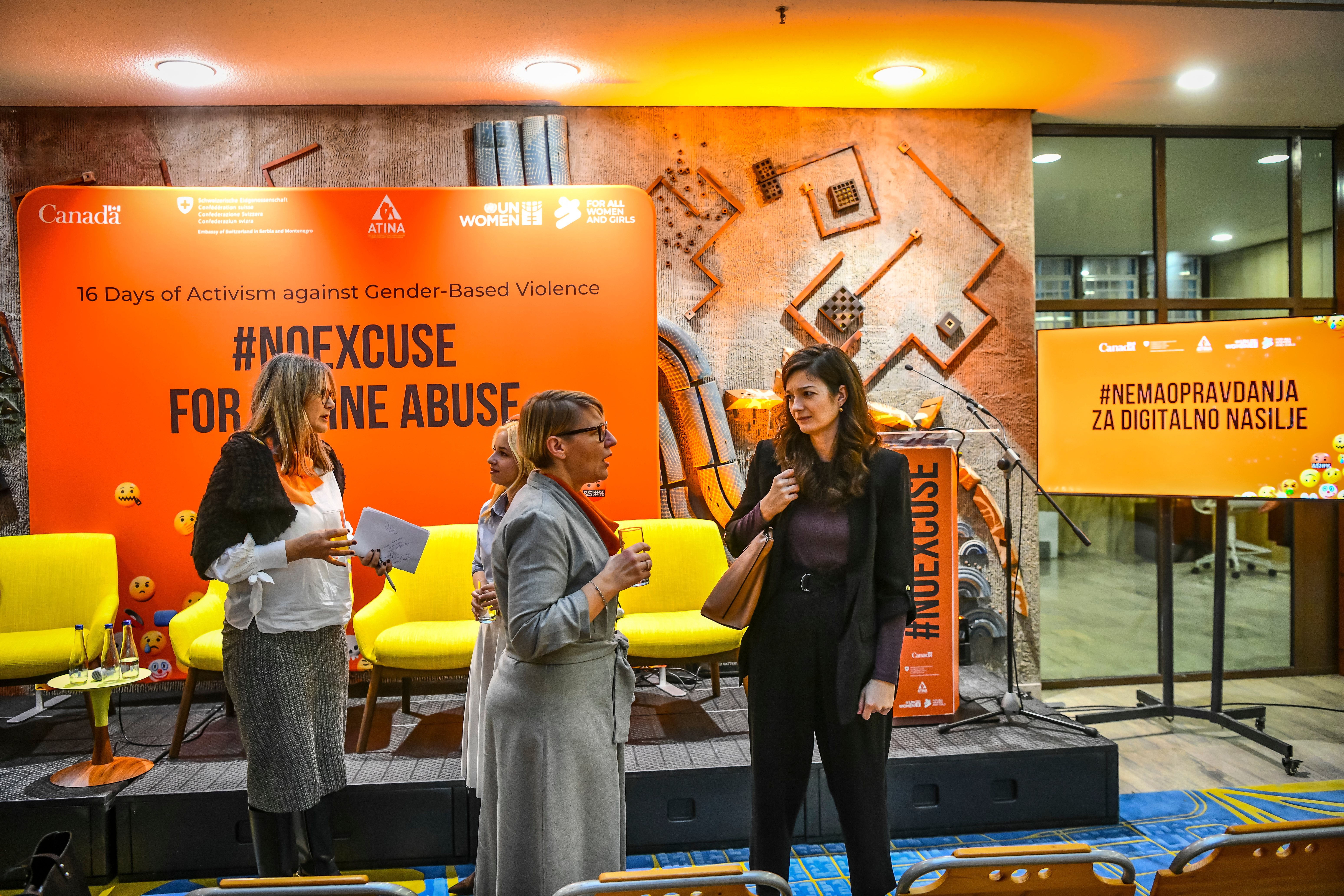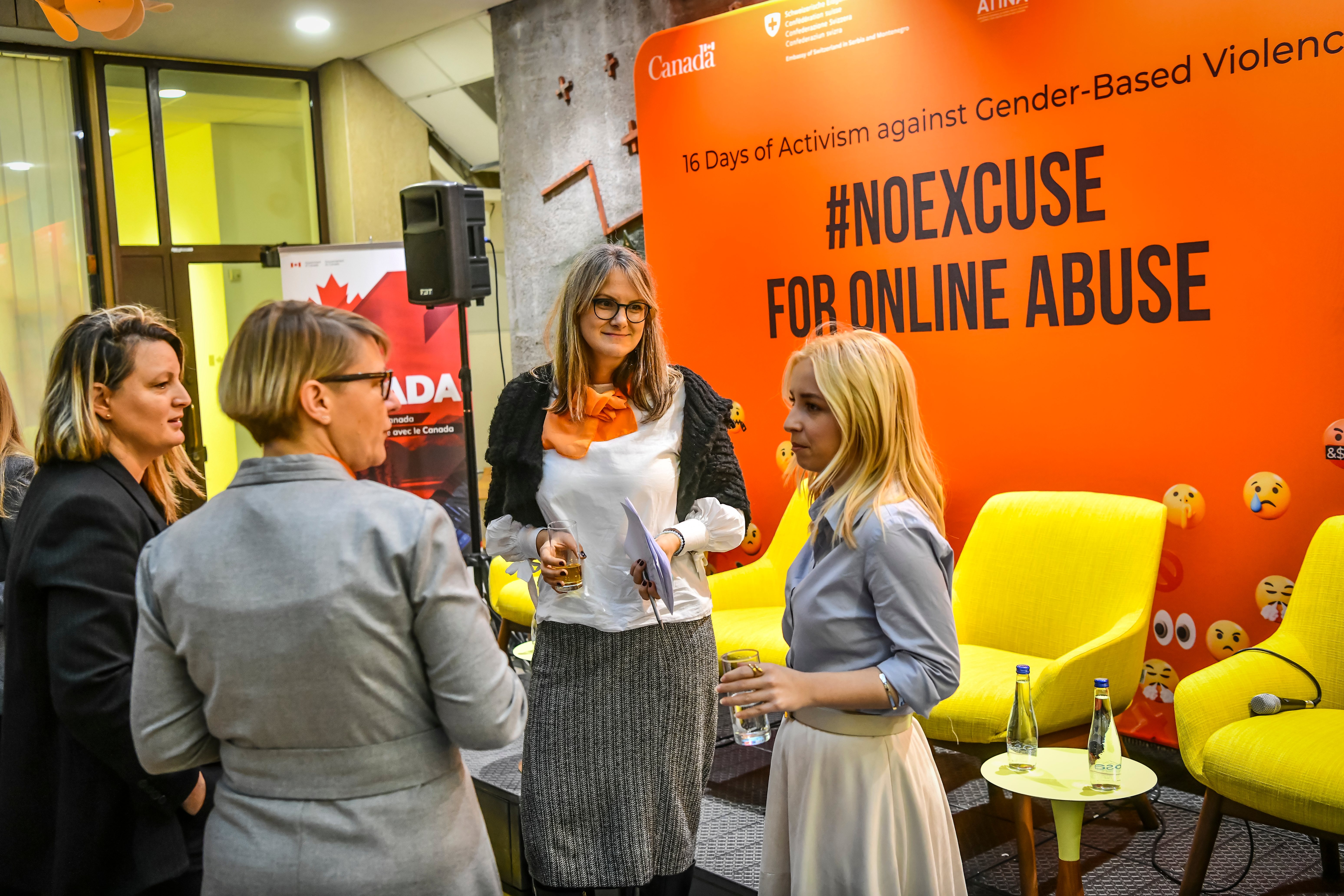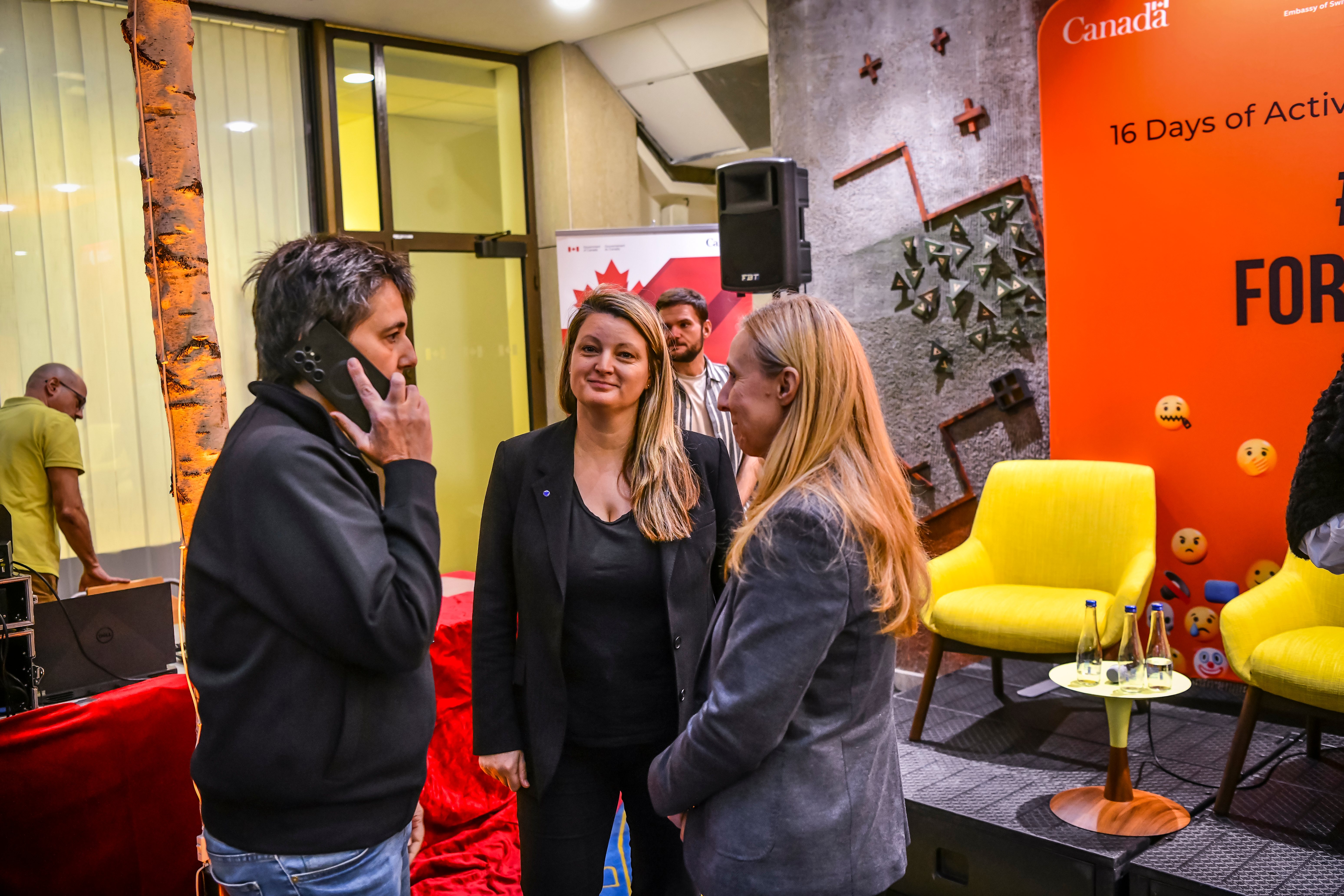 Tokom istog dana, u okviru obeležavanja kampanje „16 dana aktivizma protiv rodno zasnovanog nasilja“, održan je i širi program koji je otvoren uvodnim obraćanjima predstavnica međunarodne zajednice i institucija. Skupu su se obratile Nj. E. Mišel Kameron, ambasadorka Kanade u Srbiji, Severnoj Makedoniji i Crnoj Gori, Tatjana Macura, ministarka bez portfelja zadužena za oblast rodne ravnopravnosti, sprečavanja nasilja nad ženama i ekonomskog i političkog osnaživanja žena, Nj. E. En Lugon-Mulan, ambasadorka Švajcarske u Srbiji, Plamena Halačeva, zamenica šefa Delegacije Evropske unije u Republici Srbiji, kao i Jelena Sekulić Nedeljković iz UN Women Srbija. U svojim obraćanjima istakle su važnost prepoznavanja digitalnog rodno zasnovanog nasilja kao ozbiljnog društvenog problema i potrebu za snažnijom institucionalnom i međusektorskom saradnjom u njegovom suzbijanju