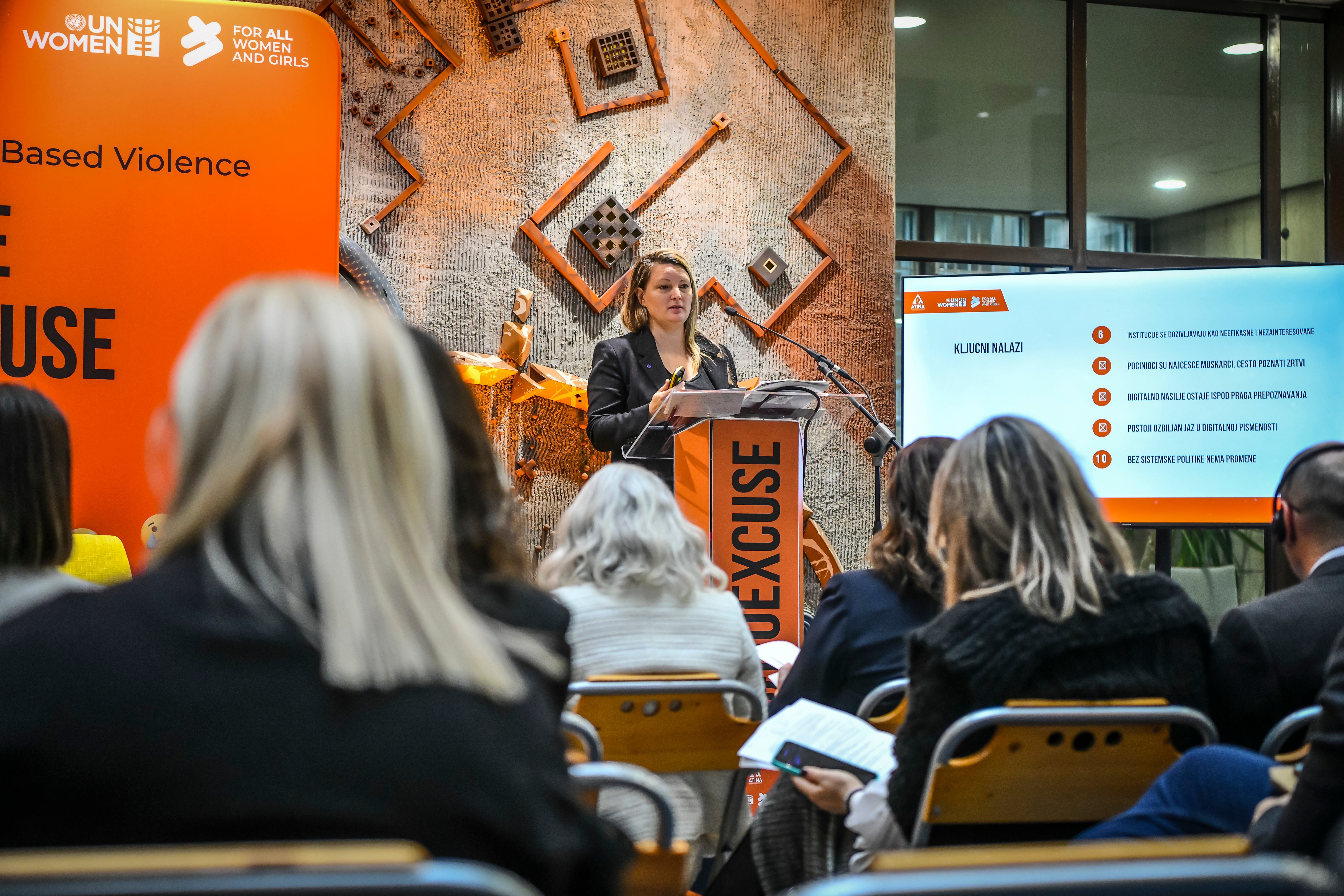 U nastavku programa Jelena Hrnjak, programska menadžerka Udruženja Atina, predstavila je i nalaze istraživanja „Ne lajkuj nasilje - Istraživanje o digitalnom nasilju prema ženama i devojkama u Srbiji” koje je objavilo udruženje Atina iz podršku UNWOMEN. Ono ukazuje na rasprostranjenost različitih oblika digitalnog nasilja, njihovu povezanost sa offline nasiljem, kao i na ozbiljne posledice koje ovakva iskustva ostavljaju na bezbednost, mentalno zdravlje i društveno učešće žena. Predstavljanje istraživanja dodatno je osnažilo poruke panela, potvrđujući da digitalno nasilje nije izolovan incident, već strukturni problem koji zahteva sistemske, rodno osetljive i dugoročne odgovore.
